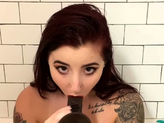 Blowjob loving brunette amateur sucks dick of lucky dude